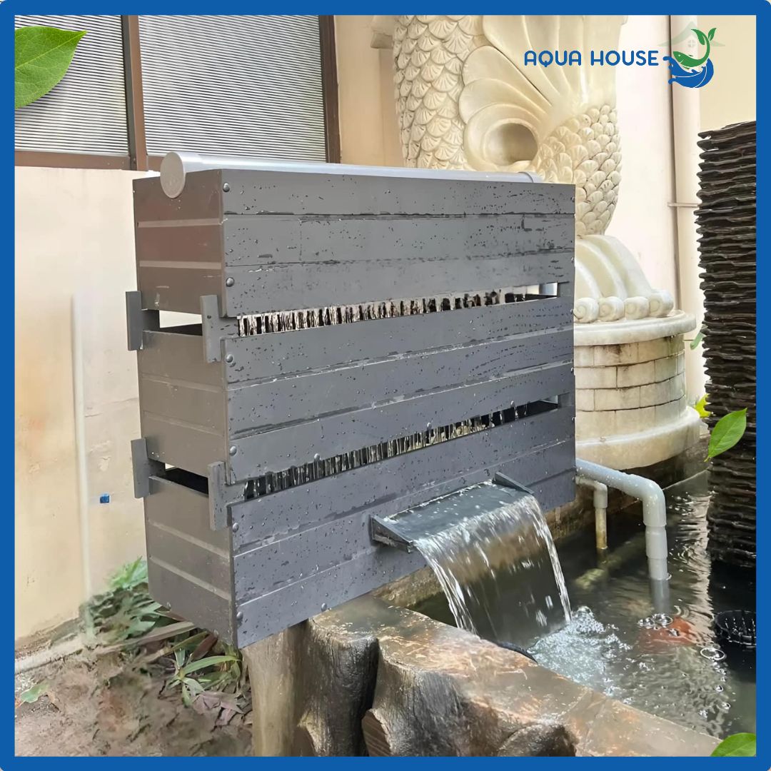 Bật máy bơm, điều chỉnh lưu lượng nước để tạo dòng chảy đều, không tràn khay. Nước chảy qua vật liệu lọc sẽ được làm sạch và oxy hóa.