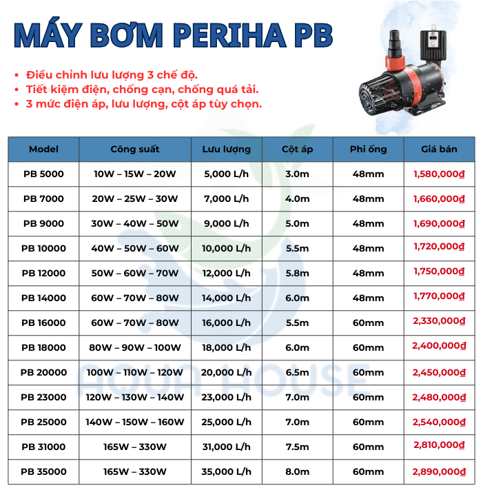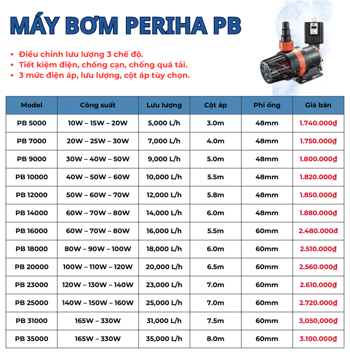Máy bơm Periha Pb Giá Tốt – Tiết Kiệm Điện – Điều Chỉnh Lưu Lượng 3 Chế Độ
