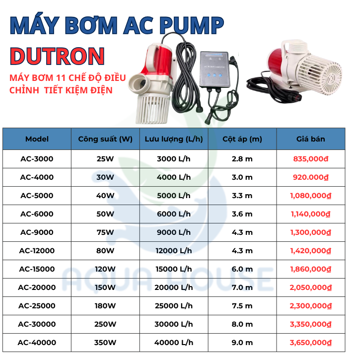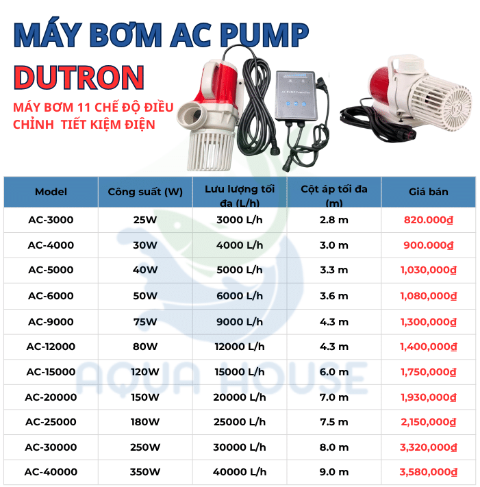 Máy Bơm Dutron Ac Pump Tiết Kiệm Điện – 11 Chế Độ Điều Chỉnh Lưu Lượng