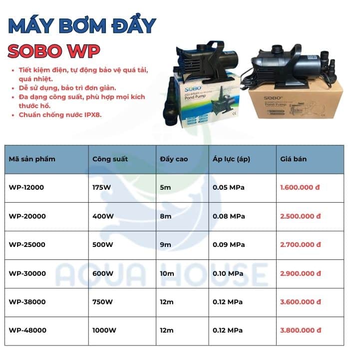 Máy Bơm SOBO WP 12000 – 20000 – 25000 – 30000- 38000- 48000 Cho Hồ Cá Koi