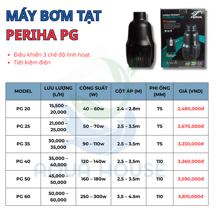Bơm Periha Pg 20 | Pg 25 | Pg 35 | Pg 40 | Pg 50 | Pg 60 Siêu Tiết Kiệm Điện Bơm Tạt Tạo Luồng Cấp Lọc Nước 3 Chế Độ