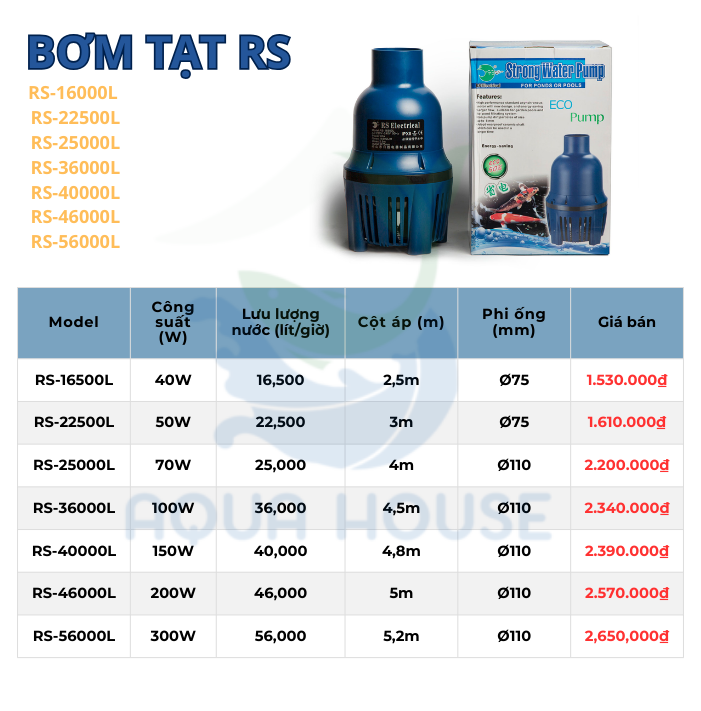 Máy Bơm tạt Strong Water RS 16000 – 22500 – 25000 – 36000 – 40000 – 46000 – 56000