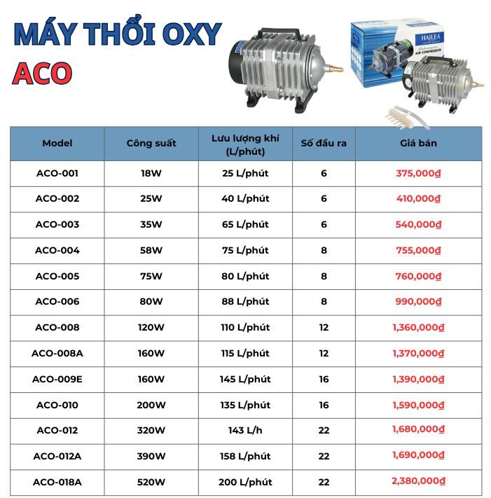 – Tùy số cá và số điểm cần oxy trong hồ.