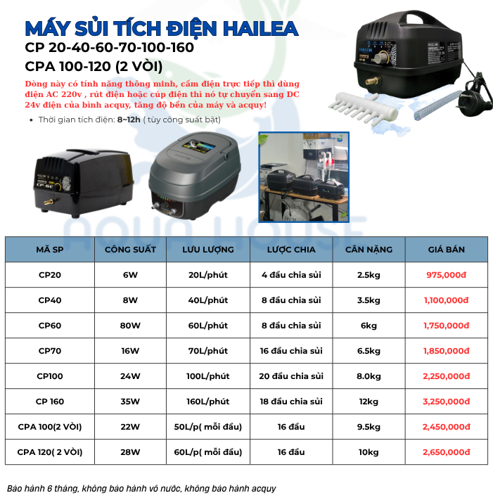 Máy Sủi Oxy Tích Điện Hailea CP 40 – CP 70 – CP 100 – Bảo Hành 6 Tháng